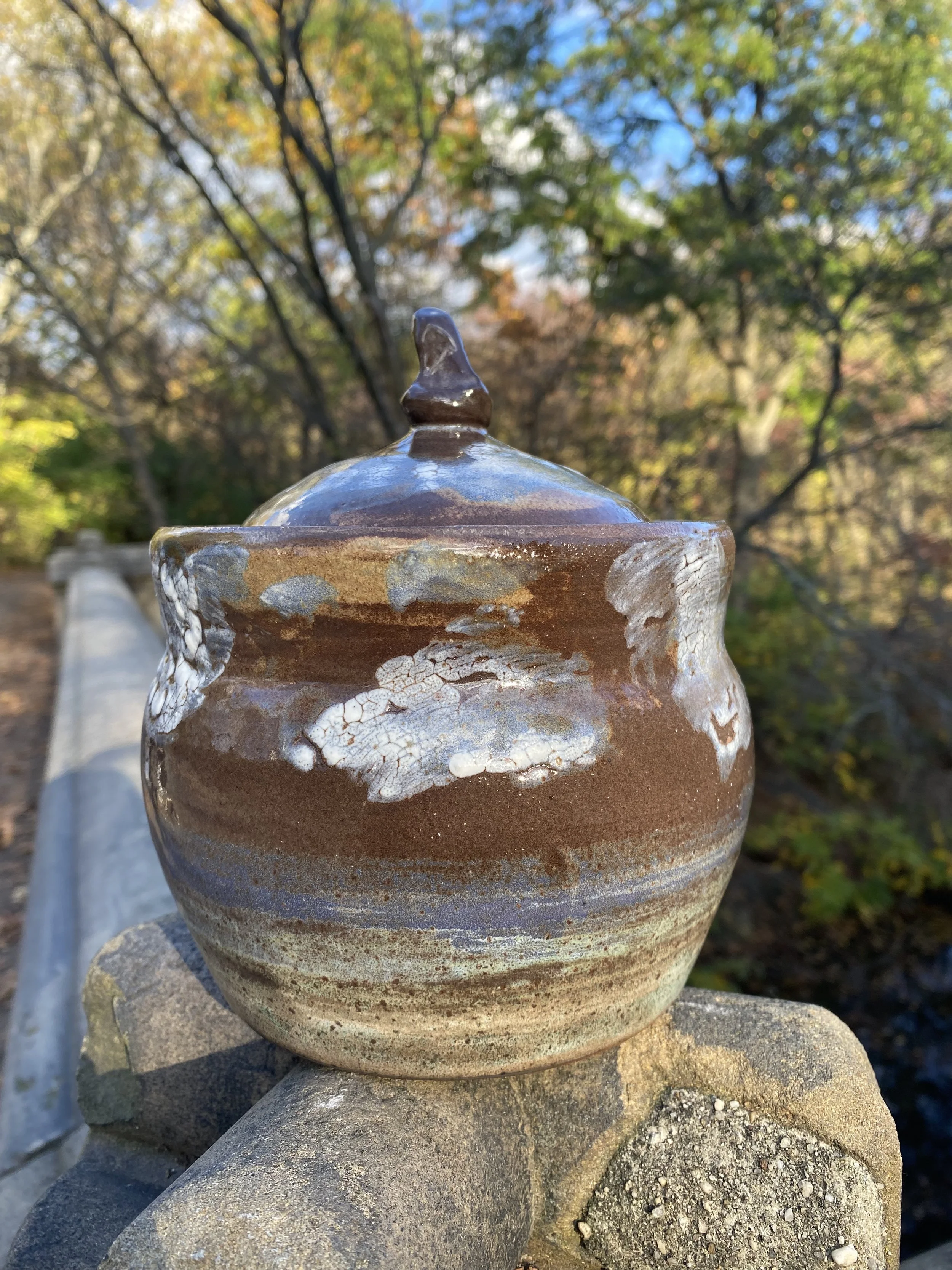 Fermentation Crock 2022 Thrown on the wheel. Stoneware. 7”x7”x8” Bernadette DarouxJanuary 28, 2023 Facebook0 Twitter 0 Likes